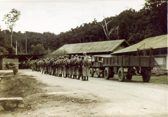 42 - Vertrek vanaf het kamp. Het is bijna avond voor de bewaking van fruittuinen. Waarvan vermoed wordt dat de infiltranten hiernaar toe komen voor het eten. Om 18.00 uur moeten de mouwen omlaag. Tweede achter papoea is Maarten van Eekelen.