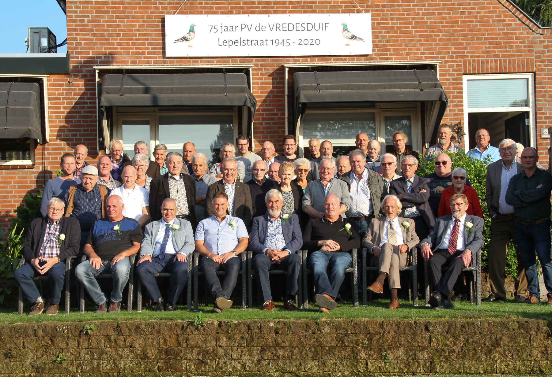 12 1/2 jaar bestaan van Duivenclub de Vredesduif. Zittend: Geert van Loon, Marijn Brouwers, Jan van Tillo, Pieta van Tillo-Kats, Rinus Roosendaal, Willem van Eekelen, Toon Jansen. Staand: Piet Keijl, Frans de Kock, Christ Geers, Jan van Eekelen, Piet van Wijk, Bart van Schilt, Marijn Raats, Jan van Schilt, Wim Clarijs, Christ v/d. Kieboom, Naan van Schilt, Cees van Tillo, Janus Veraart, Geert Suijkerbuik, Jan Bosters, Geert Otte, Pauw van Tillo, Puk van Schilt, Bovenste rij: Jan v/d. Veeren, Kees de Krom, Jan Roosendaal Mz, Jan Roosendaal Az, Sjel Maas, Dorus de Krom, Koos van Eekelen, Toon van Eekelen, Janus Roosendaal, Marijn Tunders, Marijn Schillemans, Christ Meesters, Jan Snelders, Kees van Schilt, Piet Roosendaal, Kees Ooms, Frans Bosters, Adriaan de Krom, Jan Brouwers, Rens Brouwers.