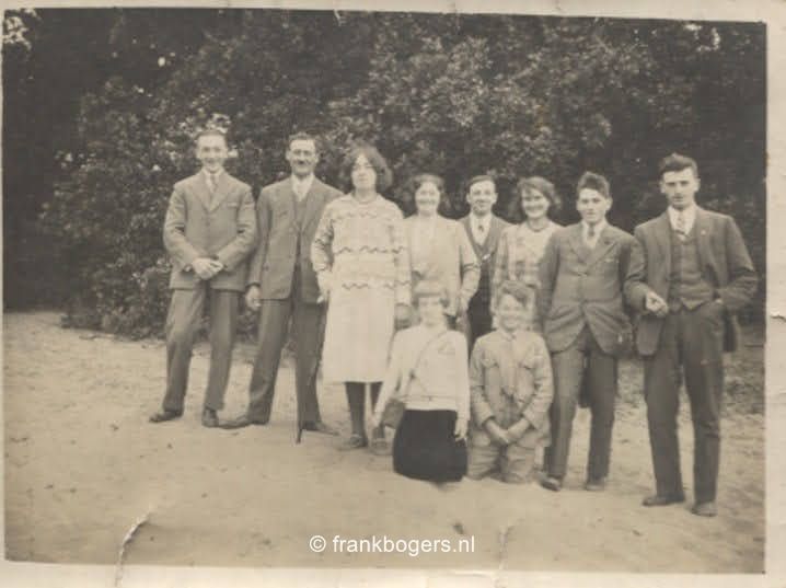 Van links naar rechts staand: 1 Louis de Blaaij - 2 Piet Dekkers - 3 Toon van Kleef - 4 ? - 5 Verdult - 6 ? - 7 Withagen - 8 Marie Dekkers Antonissen - 9 Mevr. van Kleef - 10 ? - 11 Sjaan Rens - 12 Fien de Blaaij Bogers 13 Kees Heiligers 14 Sjaan van Ekeren - 15 ? - 16 Piet de Blaaij - 17 Franske van Schilt