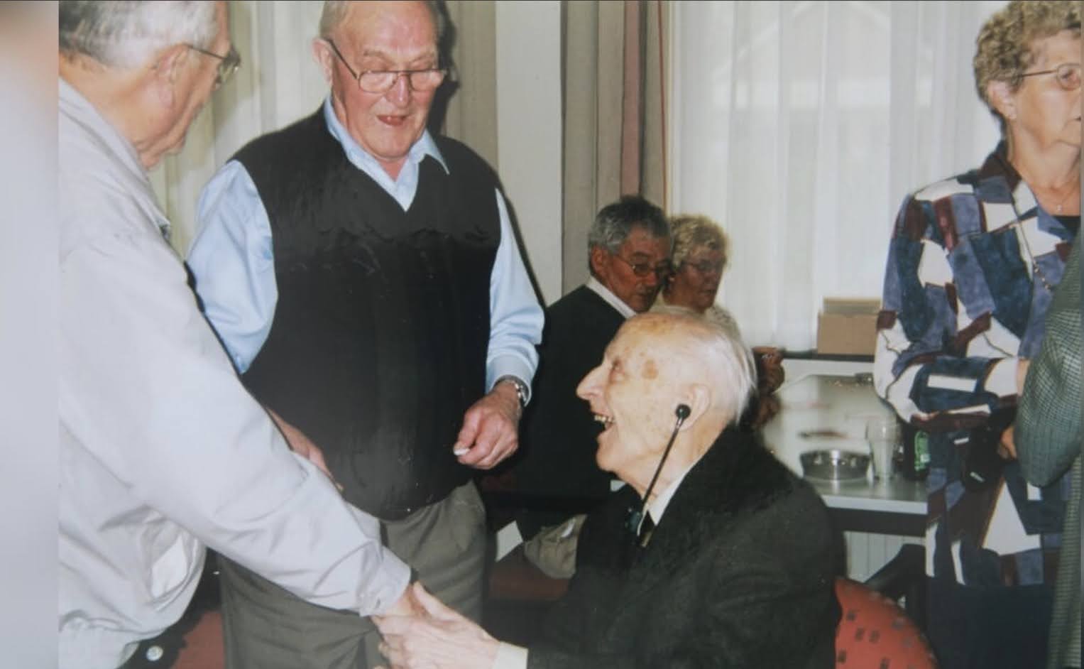 Bron Heemkundekring Halsteren Lepelstraat Foto van de maand januari 2025 : Maarten van Eekelen vertelt dat deze foto is genomen in de Lepelaar ter ere van een jubileum dat de Lepelaar en de woningen in de Bernadettestraat zoveel jaar bestonden. Woningstichting Castria in samenwerking met de activiteitencommissie van de Lepelaar organiseerden dit jubileum. Op de foto staand: links de zoon van meester Sio, daarnaast Piet van den Ende (bewoner van de Bernadettestraat). Zittend de 100-jarige meester Sio (die als bijnaam van de jongensschool "de Kiewit" werd genoemd). Helemaal rechts op de foto is Koosje Meesters-van Tilburg. Op de achtergrond is ook Jan van Schilt te zien