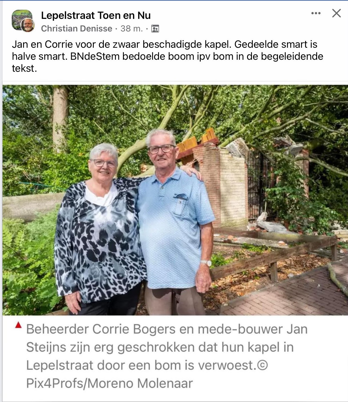 Hier een beeld van de Heilige Antonius van Padua kapel te Lepelstraat na de storm.