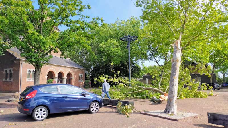Ook de bomen op het kerkplein liepen flinke schade op. De gemeente Bergen op Zoom was in het gehele dorp enkele dagen bezig om de takken e.d. op te ruimen.
