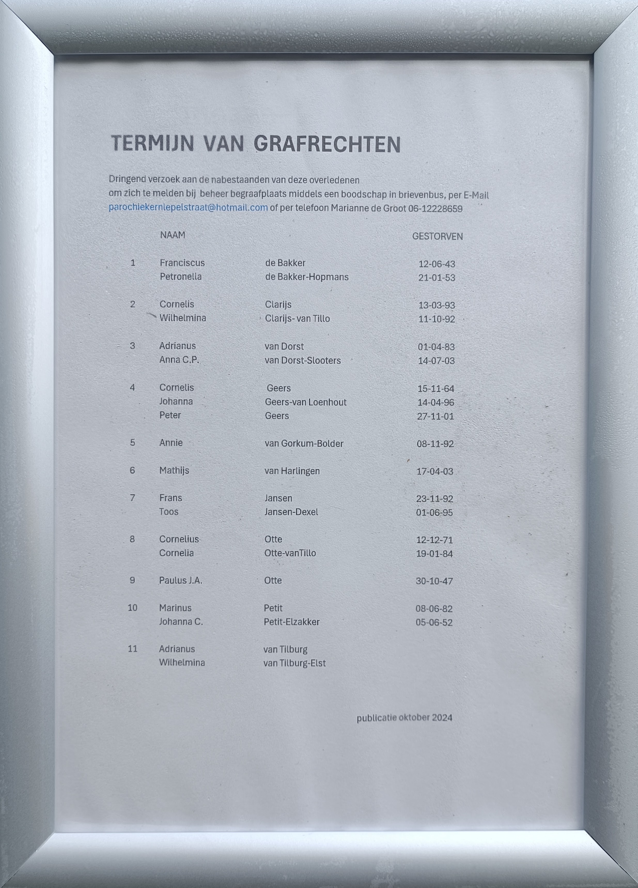 Op zaterdag 1 november 2025 zal onze begraafplaats in Lepelstraat in een zee