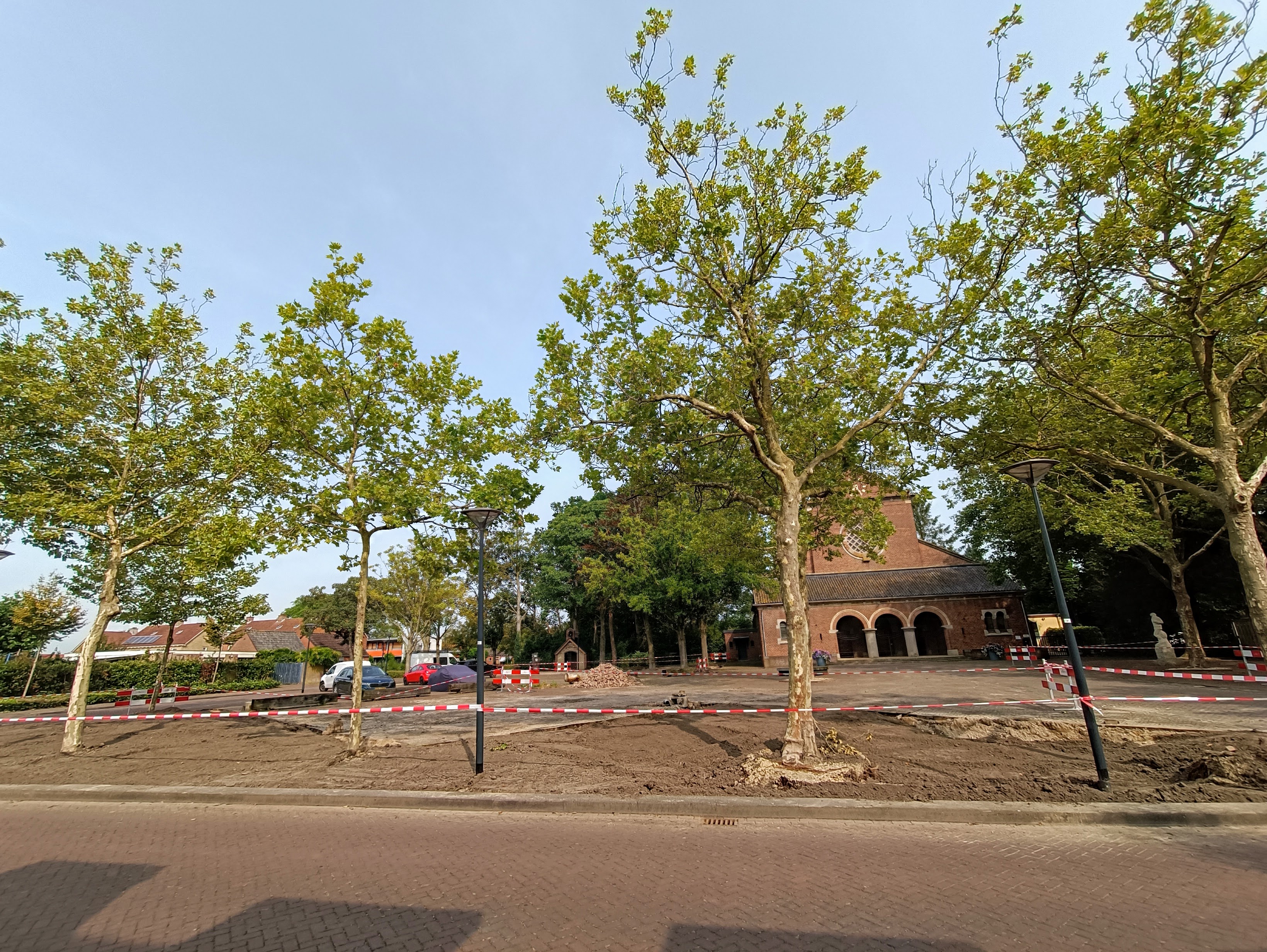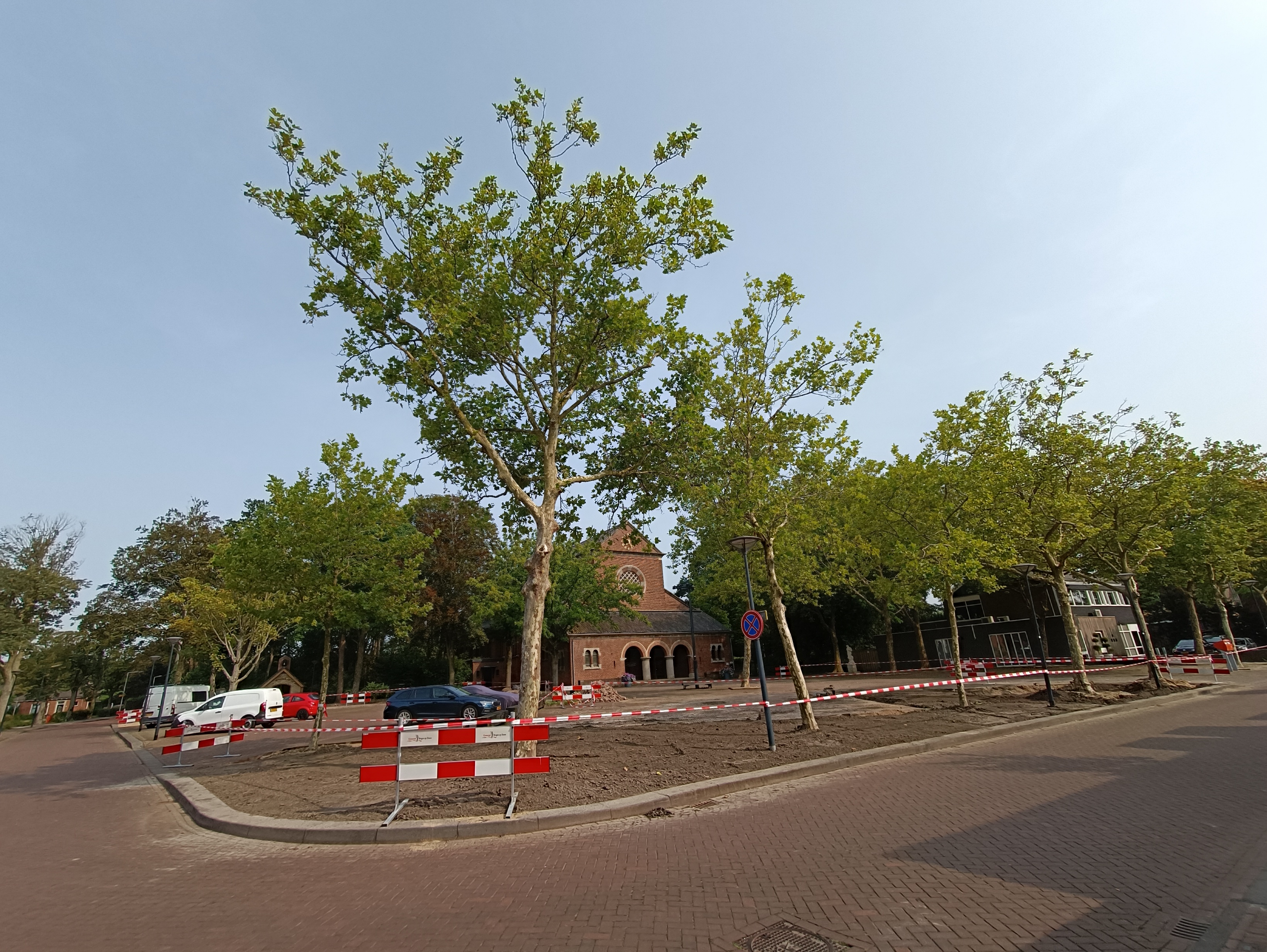 Het huidige Kerkplein is erg versteend en heeft door de storm van twee