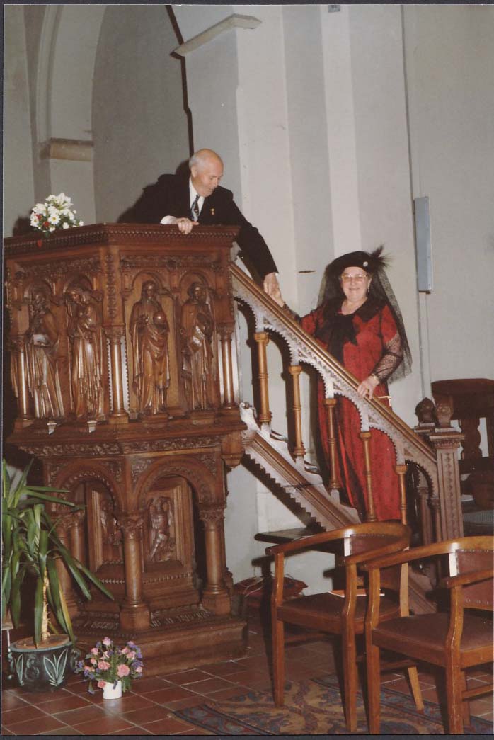 Gommert Bogers en Jo Bogers-Meesters op de spreekstoel. Foto gemaakt na de Eucharistieviering op 2 februari 1983. Heilige Mis opgedragen uit dankbaarheid voor hun 40 jarig huwelijksfeest.