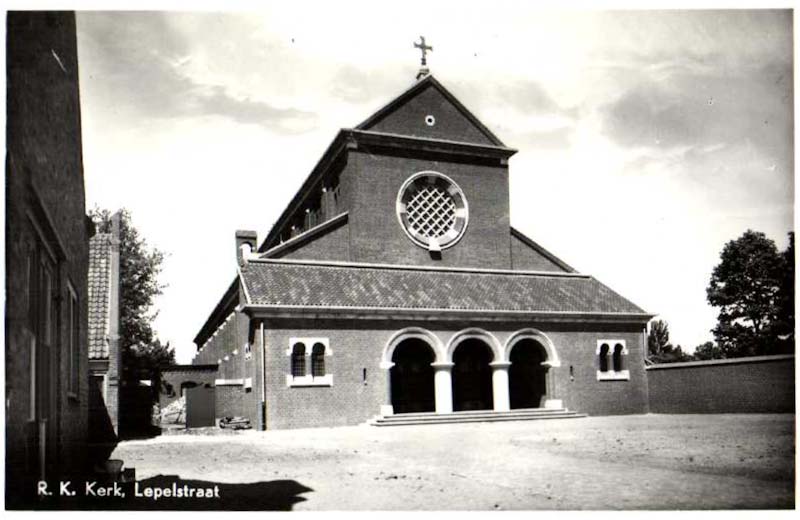 De kerk van Lepelstraat op een ansichtkaart, die verkrijgbaar was bij de plaatselijke winkel van de familie Jan Wouts, het Wotserieke.